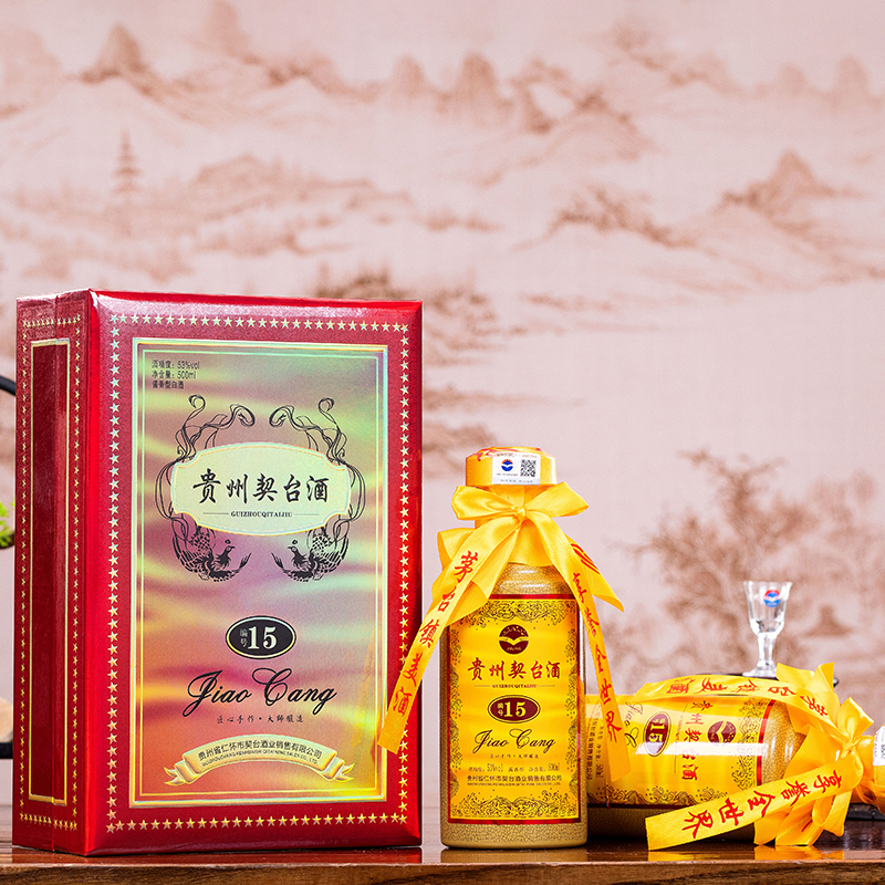 [贵州契台酒·编号15]是我厂深度研发的一款品牌,经过国家高级调酒师精心把关研制,产自茅台镇酱酒核心产区酿造-精心选粮-赤水河水-精心酿造-35道工序-165个工艺环节-国家执行标准检验出厂,采用本地有机糯高粱、小麦为原料、传承茅台12987工艺。口感优雅细腻,舒适度高,受到广大消费者好评。