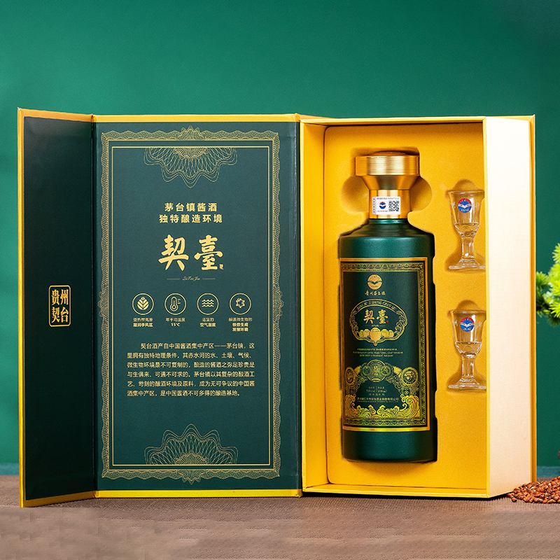 [契台酒·精品]是我厂深度研发的一款品牌,经过国家高级调酒师精心把关研制,产自茅台镇酱酒核心产区酿造-精心选粮-赤水河水-精心酿造-35道工序-165个工艺环节-国家执行标准检验出厂,采用本地有机糯高粱、小麦为原料、传承茅台12987工艺。口感优雅细腻,舒适度高,受到广大消费者好评。